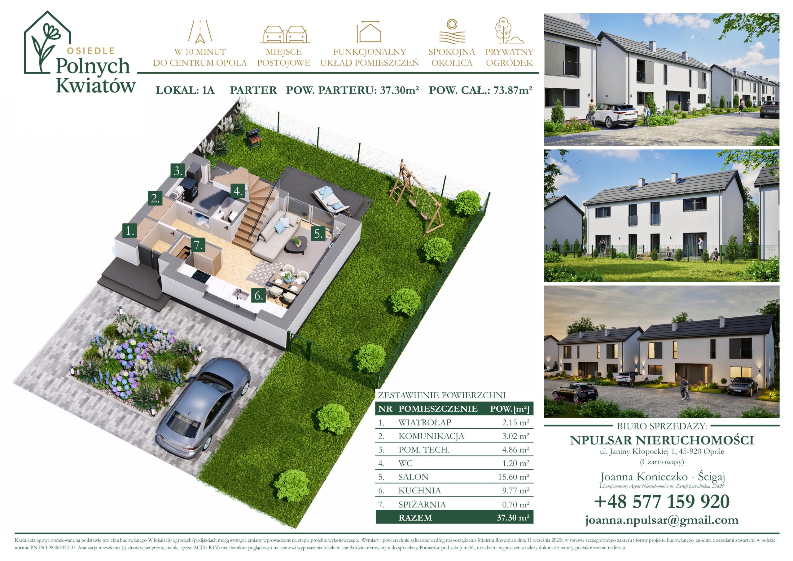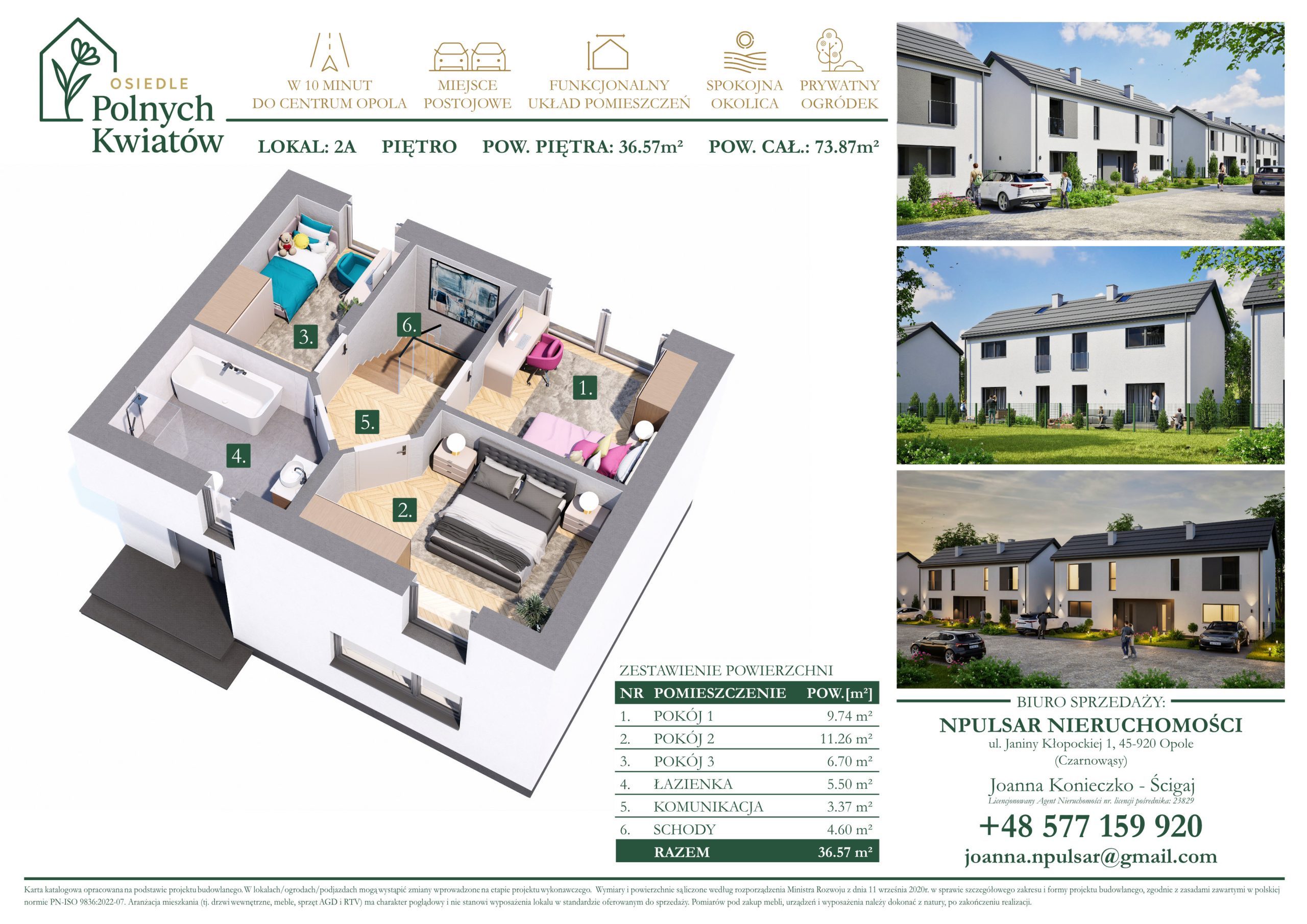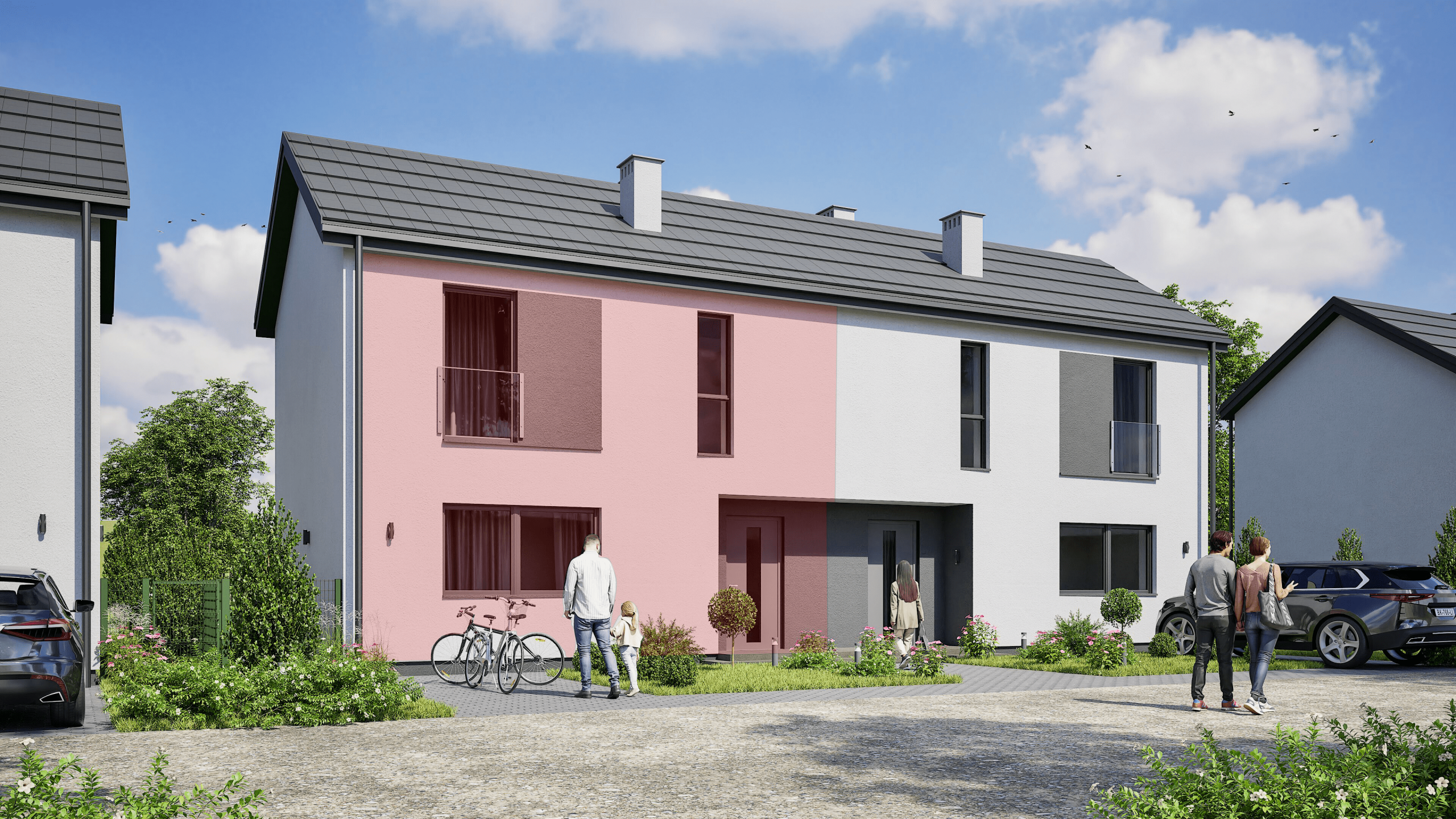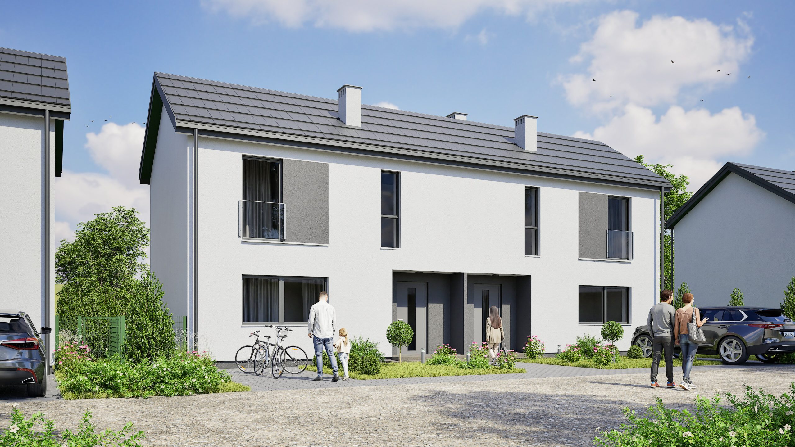 „Osiedle Polnych Kwiatów” to kameralny projekt obejmujący budowę 8 budynków w zabudowie bliźniaczej, czyli łącznie 16 segmentów mieszkalnych zaprojektowanych z myślą o komforcie codziennego życia. Każdy dom ma powierzchnię użytkową 73,87 m², rozplanowaną funkcjonalnie – dla rodzin i osób szukających wygodnego domu blisko miasta.